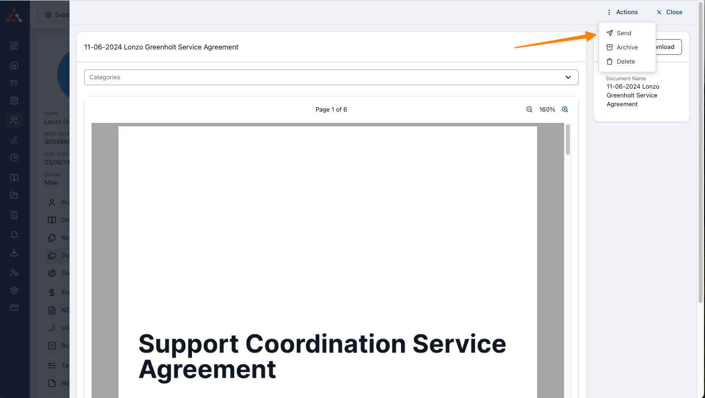 You can now send documents from within the 'Documents' page within a participants profile. Previously you would have had to assign a document to a record to send. Now you can do that from within the documents page, further streamlining your workflow