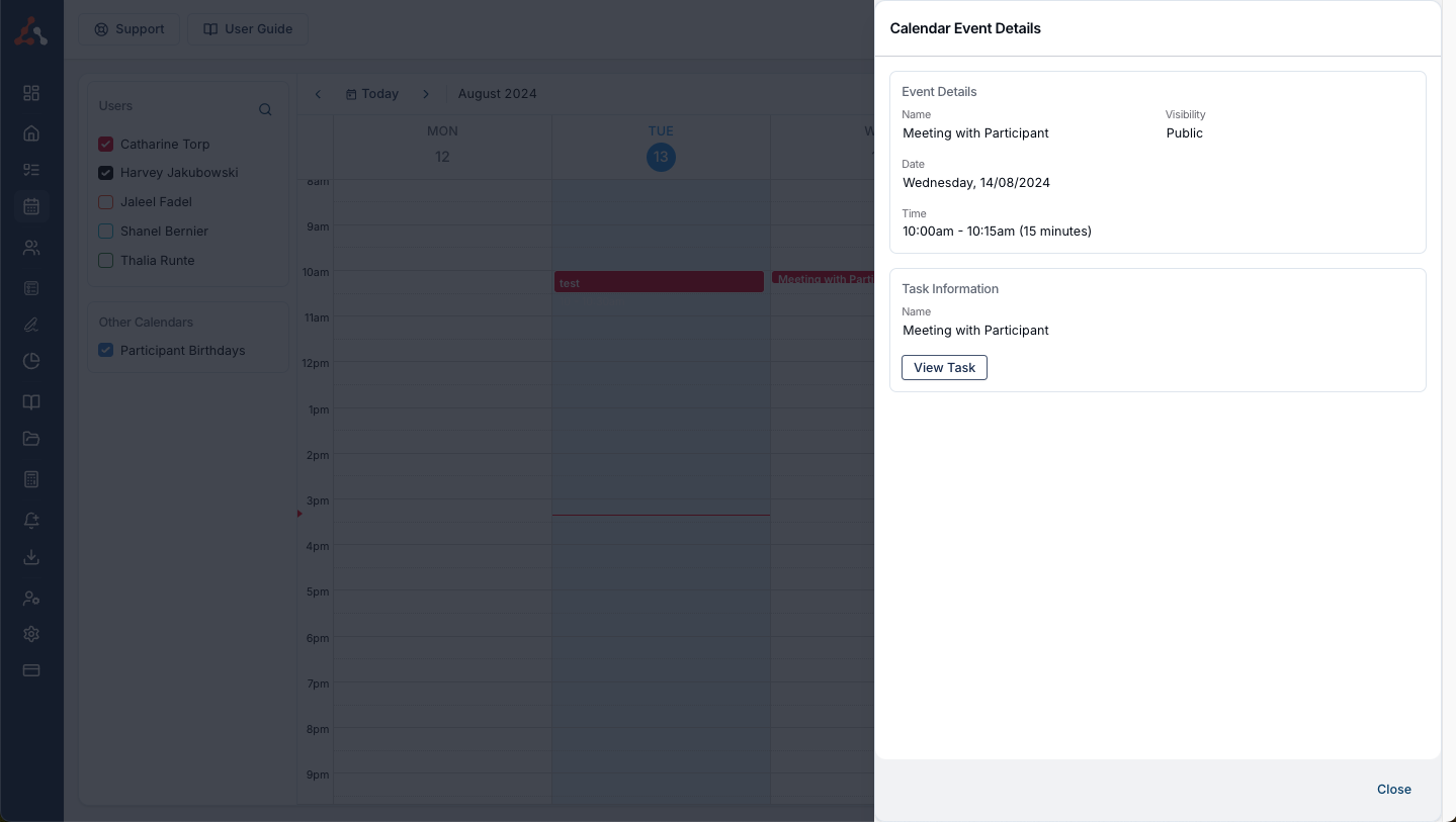 By clicking the Calendar Icon from the Task Board you will be taken to the calendar event details. You will also be taken to the week the event is linked to within the calendar features.