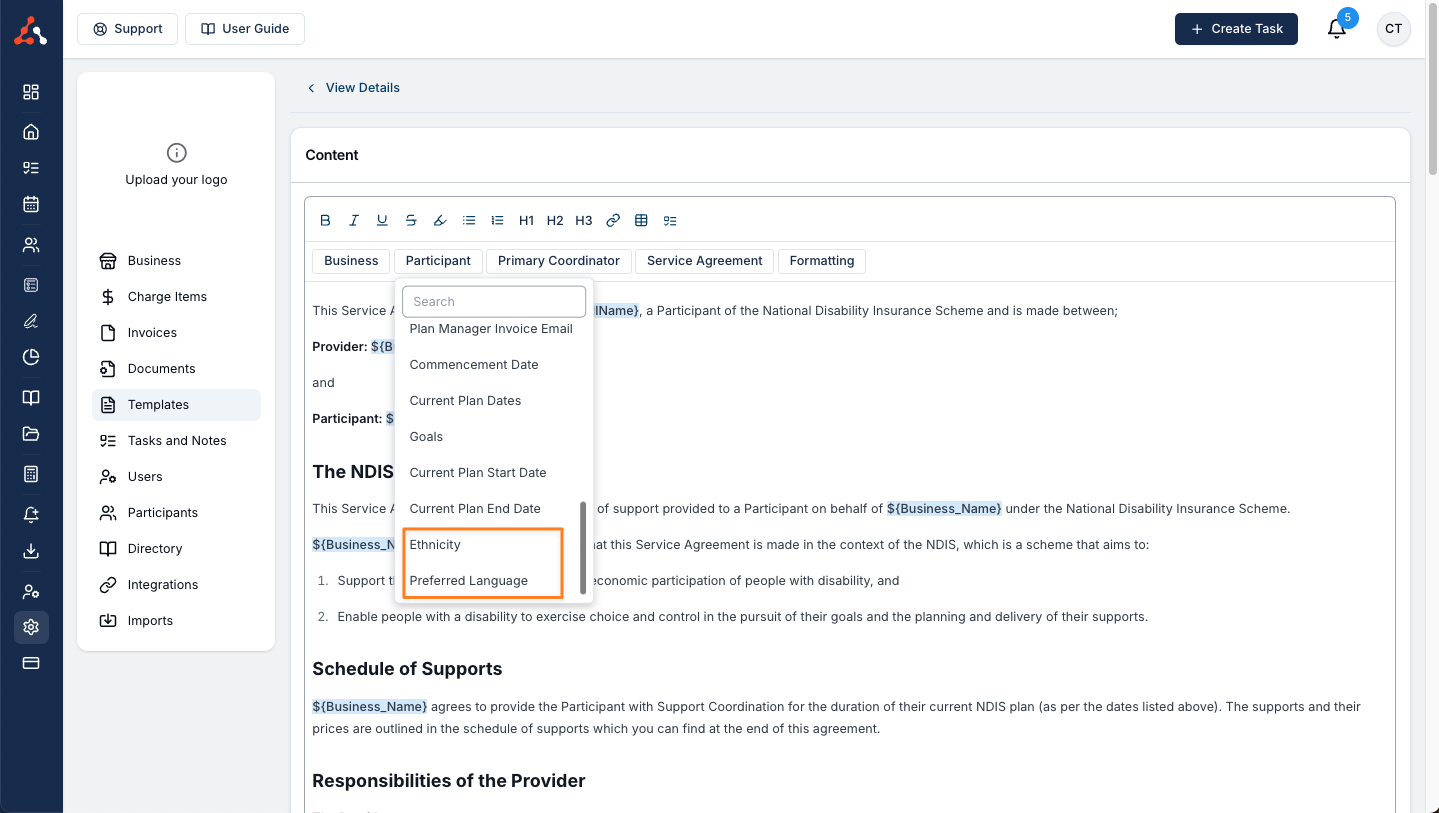 We have added the option to include Ethnicity and Preferred Language as placeholders within the template settings. You can now add this placeholder to your existing templates.
