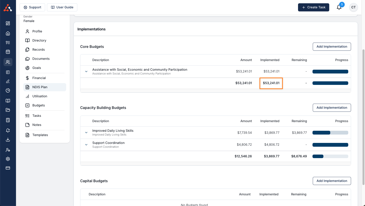 We have updated the Implementation Manage screen to now include the total for the implemented supports as seen below.