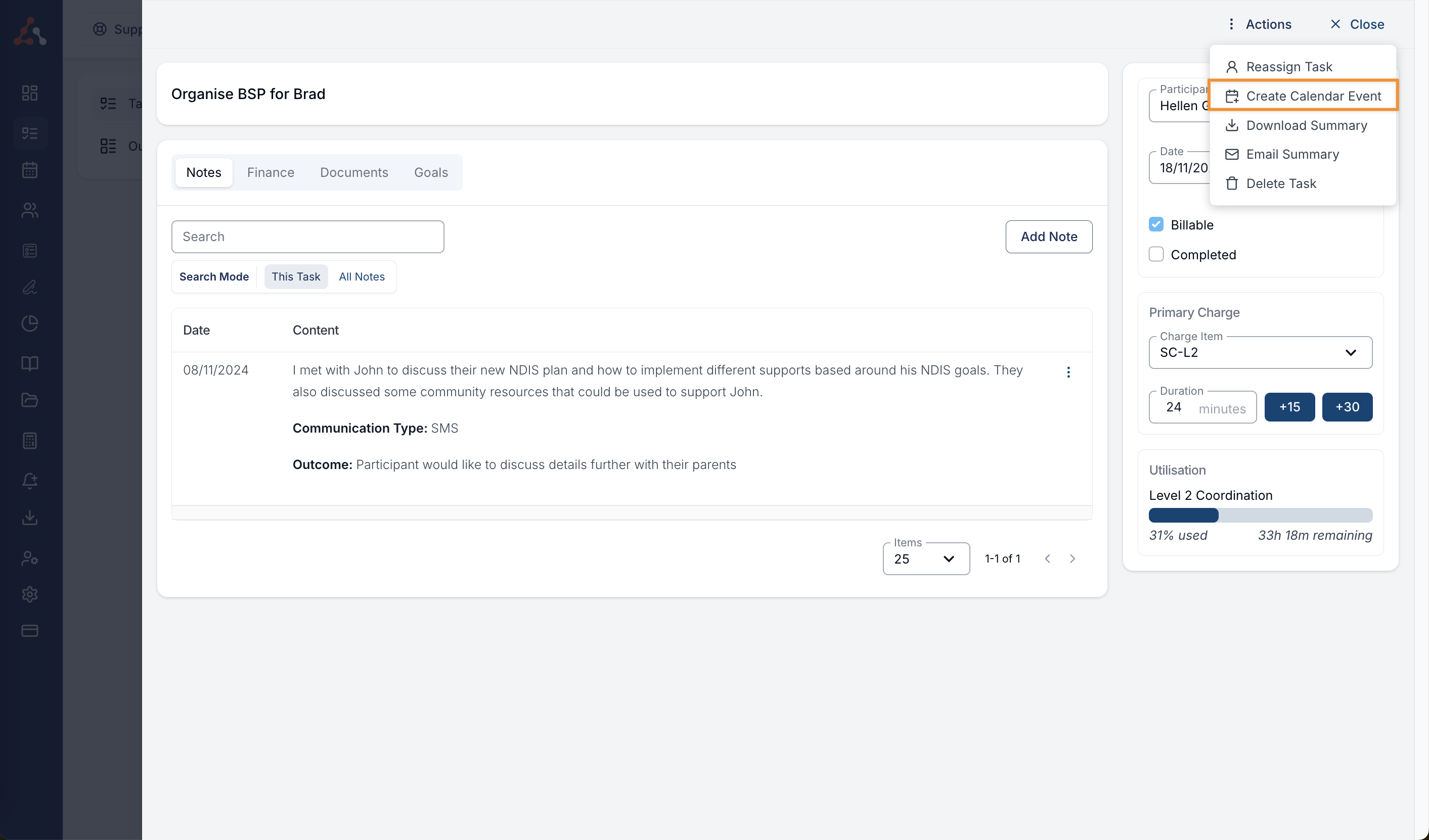 We have added the ability to create calendar events from within the Task View in the 'Actions' options! Upon clicking you will be brought to the event creation option similarly to as you would when creating a calendar event within the calendar functionality.