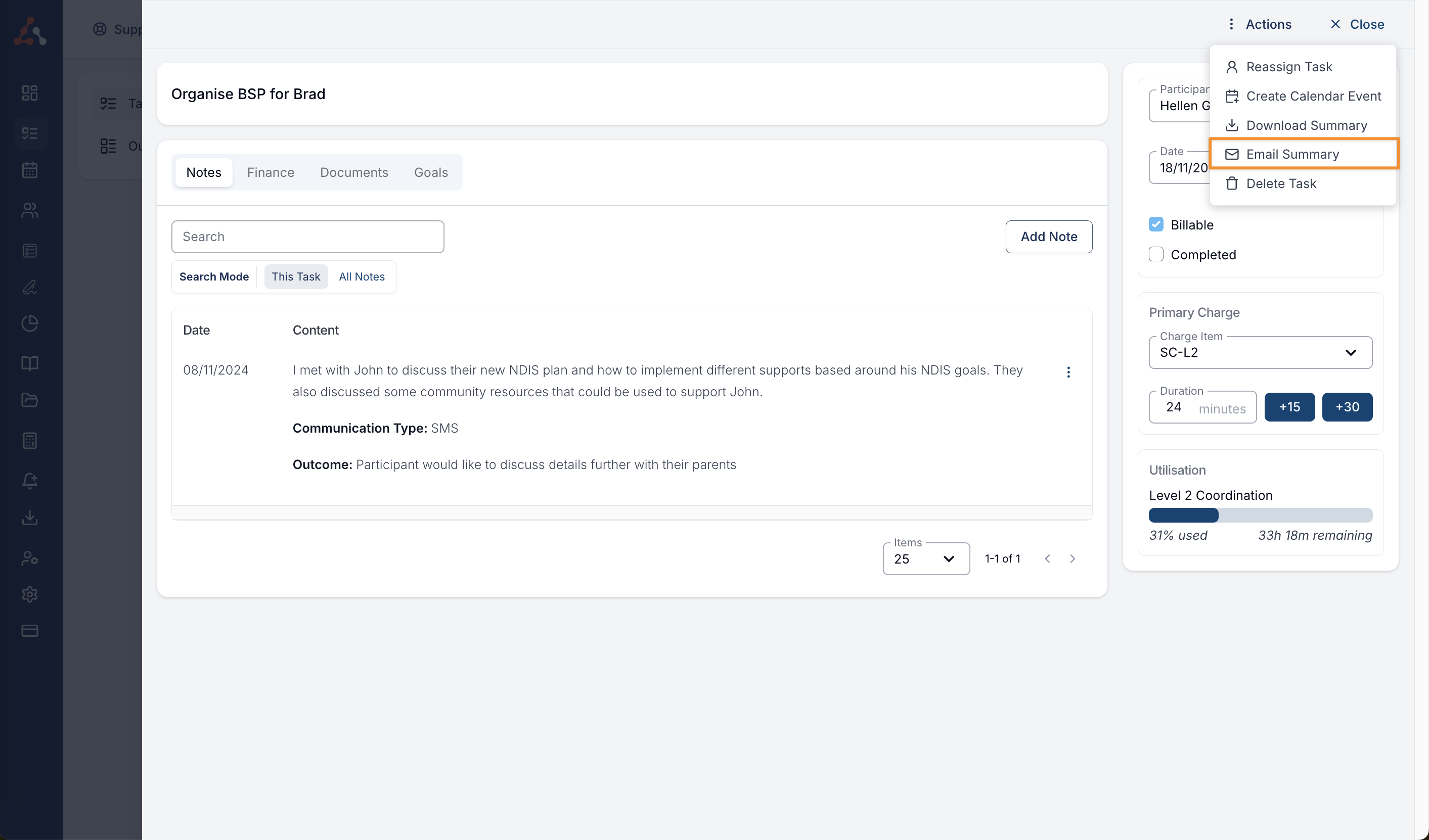 We have added the ability to email the PDF of the Task Summary from within the Task View in the 'Actions' options!