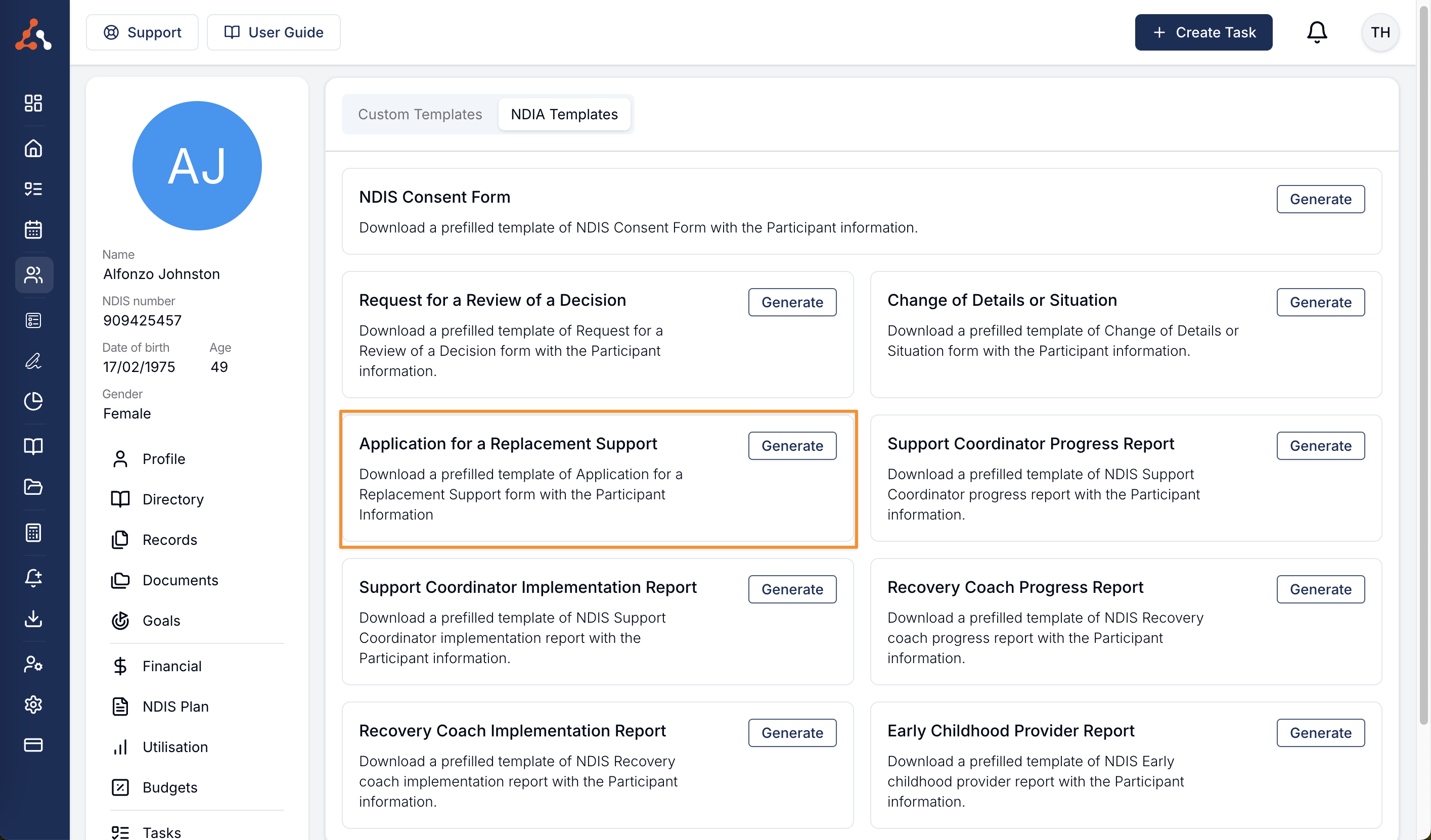 We have now added the Request for Replacement Support NDIS Template to our NDIS Templates option form within a participants profile. This new template makes use of the Astalty placeholders in line with the other NDIS Templates. You can find out more about this document from the NDIS website through this link here.