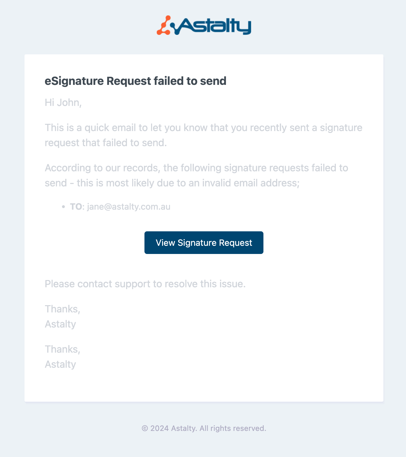 Within a failed eSignature request email we have now added a button that will take you to the request! Removing the need for you to click through your eSignature requests to try and find the failed request.
