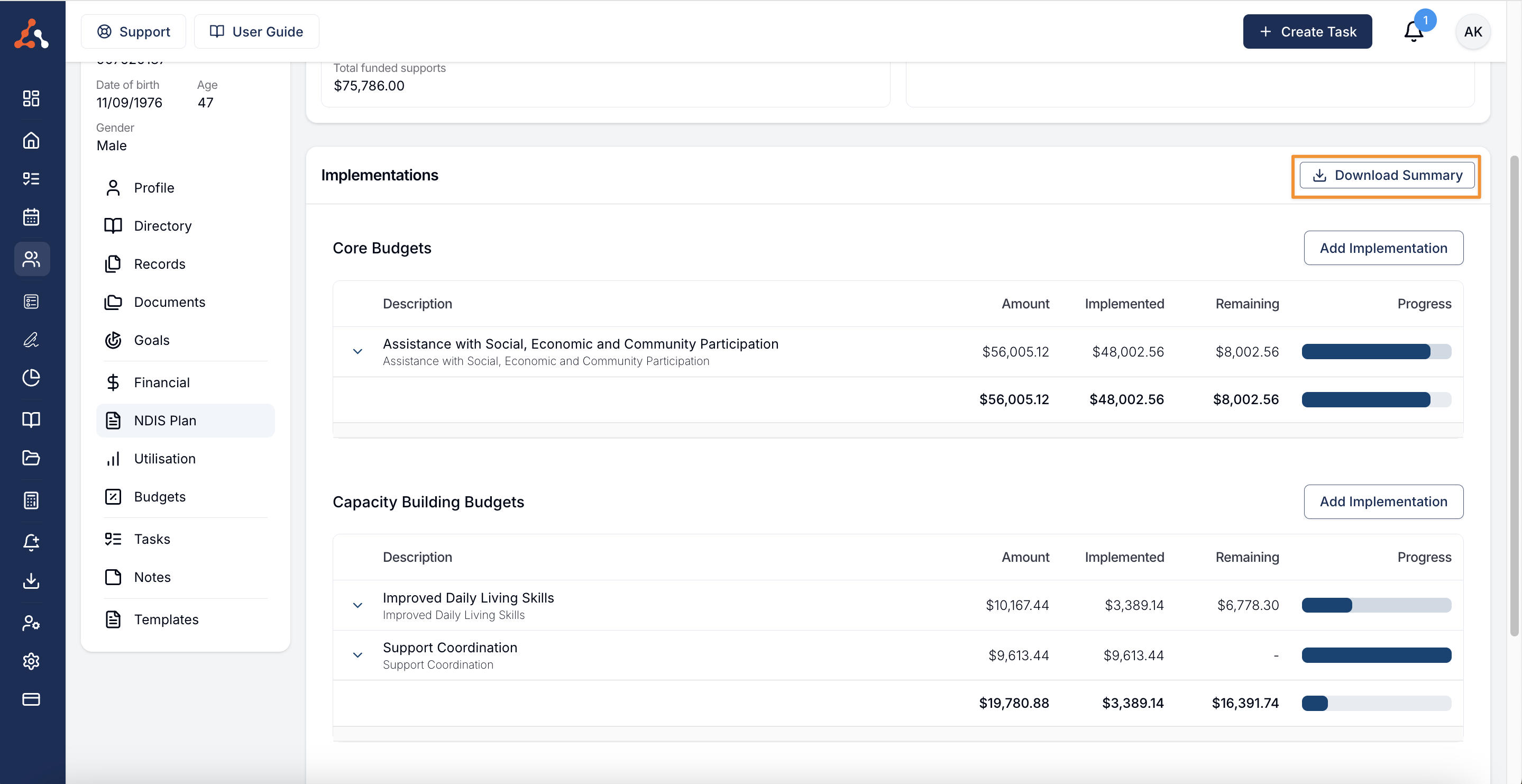 Within the Implementations section, you can now download a PDF summary of the implemented supports. This feature simplifies the process of sharing this information with your participants.