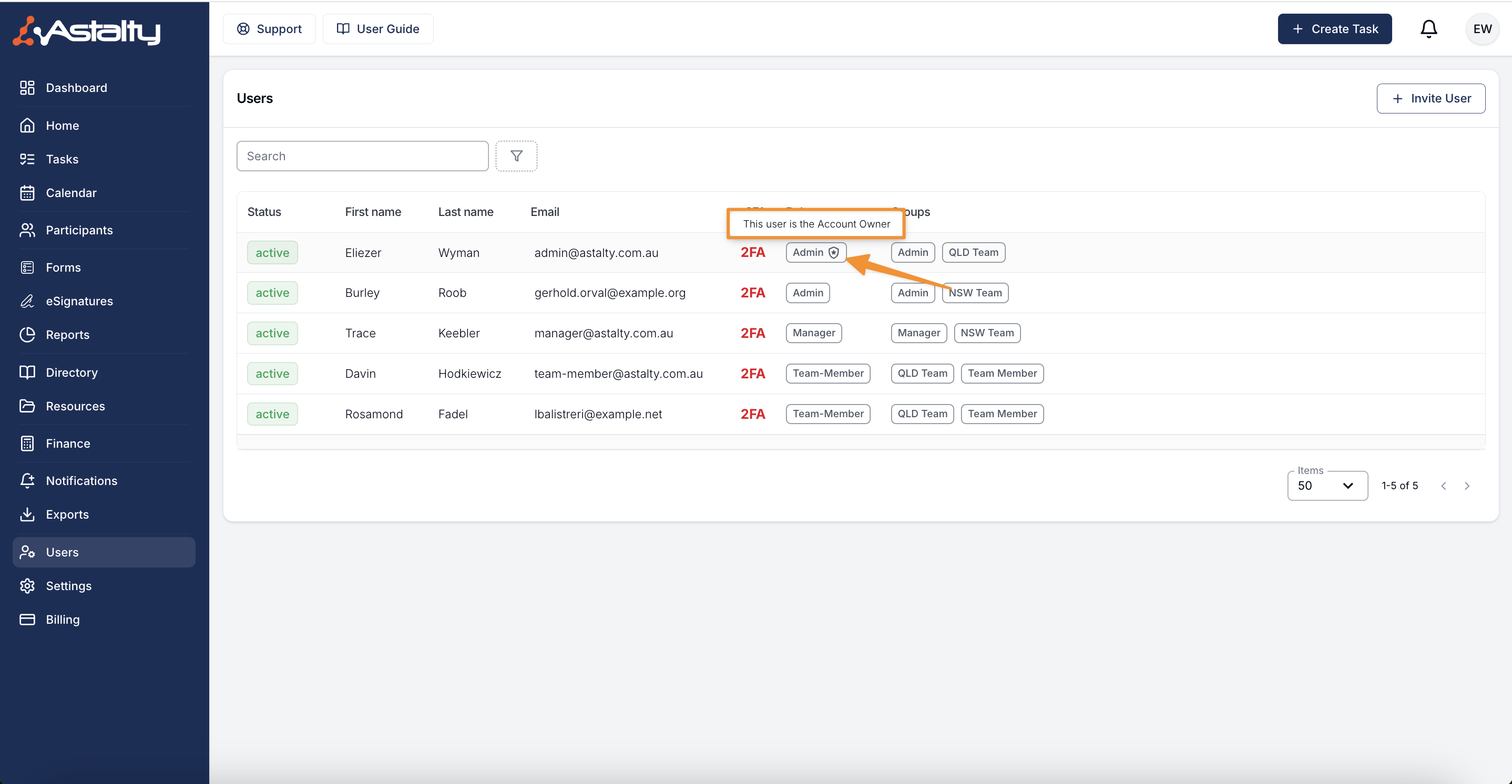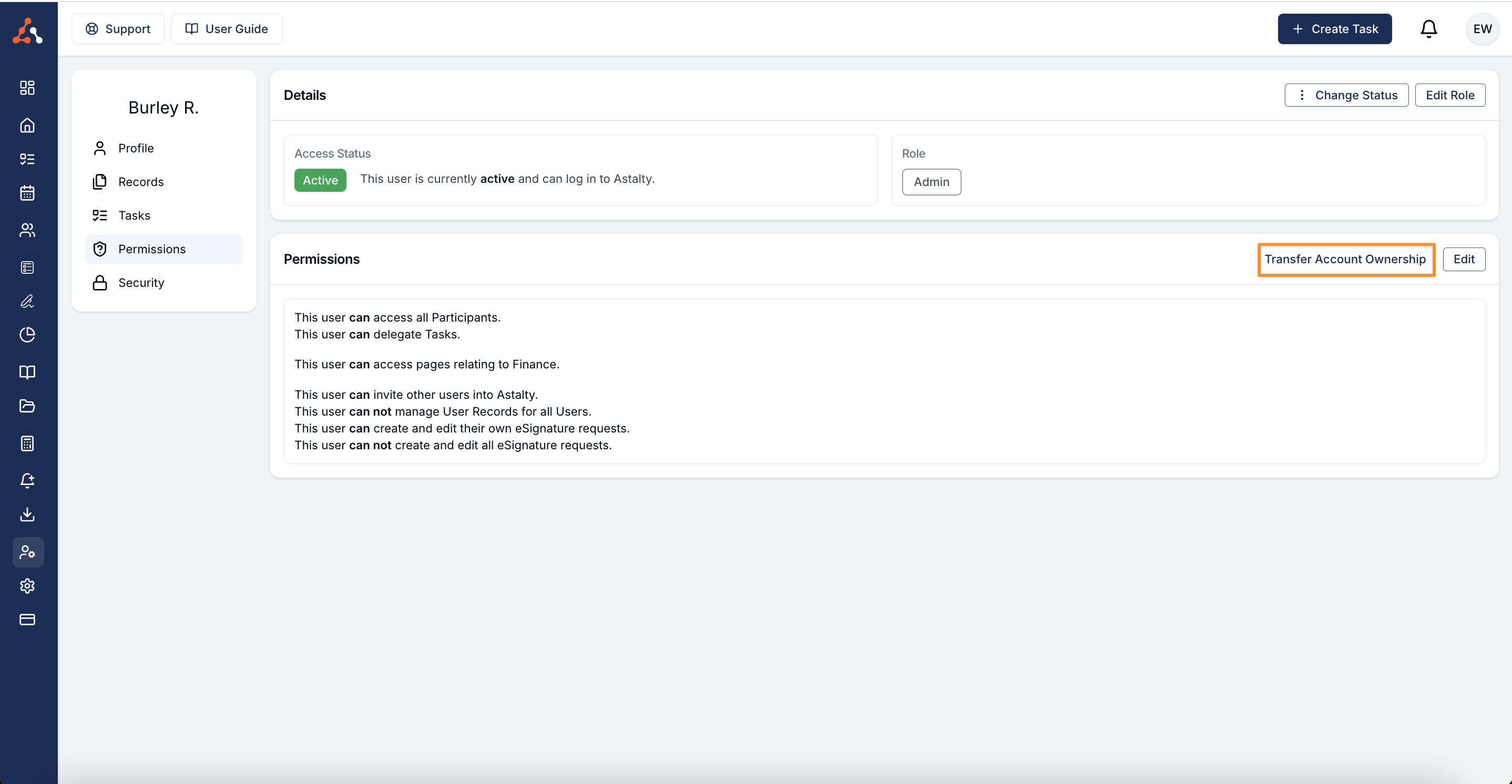 We have added the ability to transfer ownership of the Astalty organisation internally, previously this was done by communicating with Astalty support. Now this can be done through the account owners profile and ownership can be transferred to other Admin users.