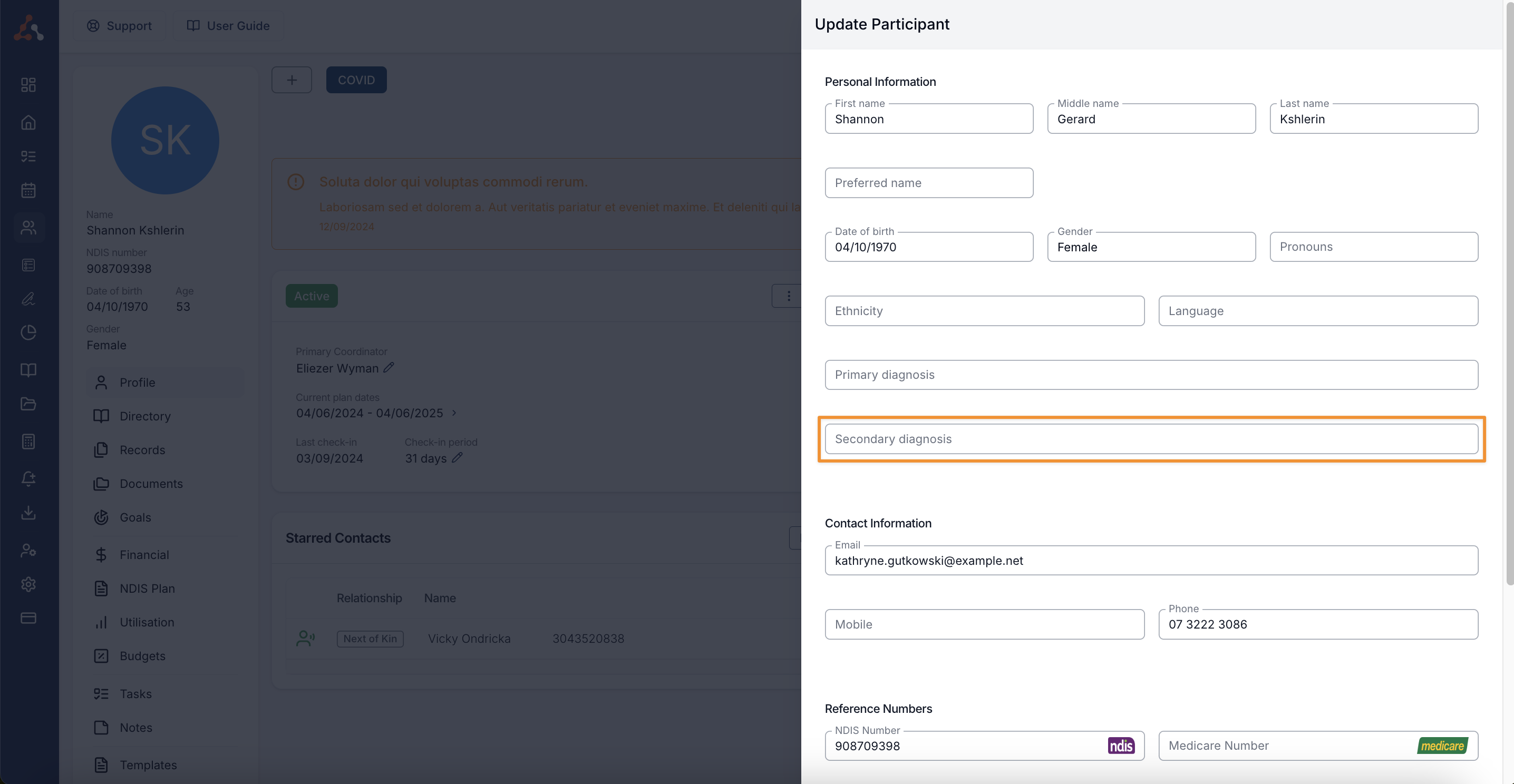 As mentioned we have now added a dedicated Secondary Diagnosis field within the participants profile to store any additional diagnosis for your participants. You can now export this information within the Participant Export.