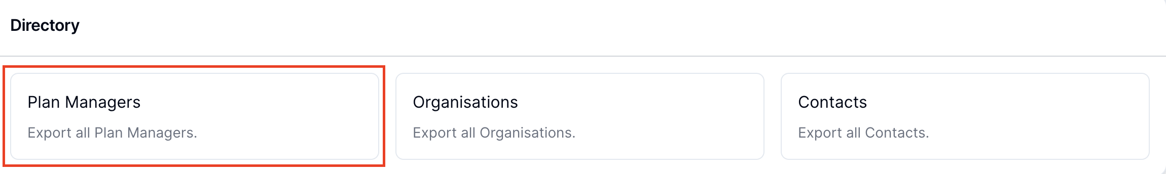To generate an export of all Contacts within your Astalty account, head to the Exports page in Astalty. Then click Create Export and select Plan Managers or click here.