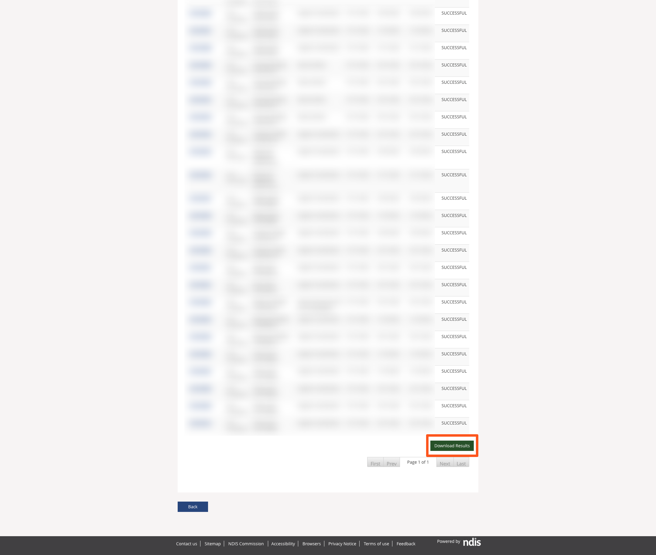 Scroll to the bottom of the results and click on Download Results. You can then import this file into your Invoice Batch NDIS Payment Receipt.
