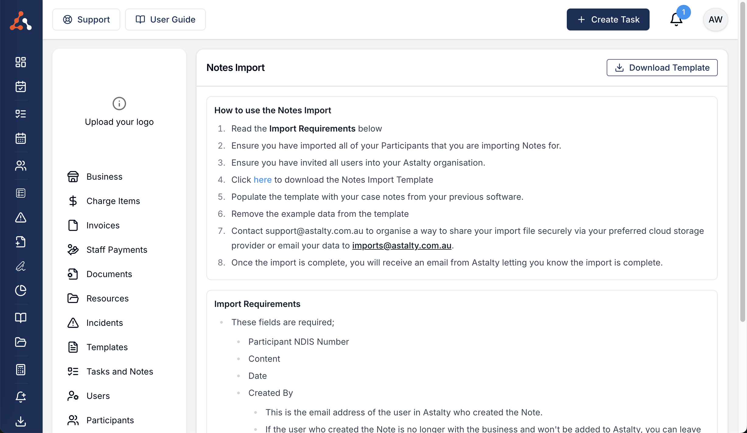 If you encounter any issues during the import process, please reach out to support at support@astalty.com.au for assistance.