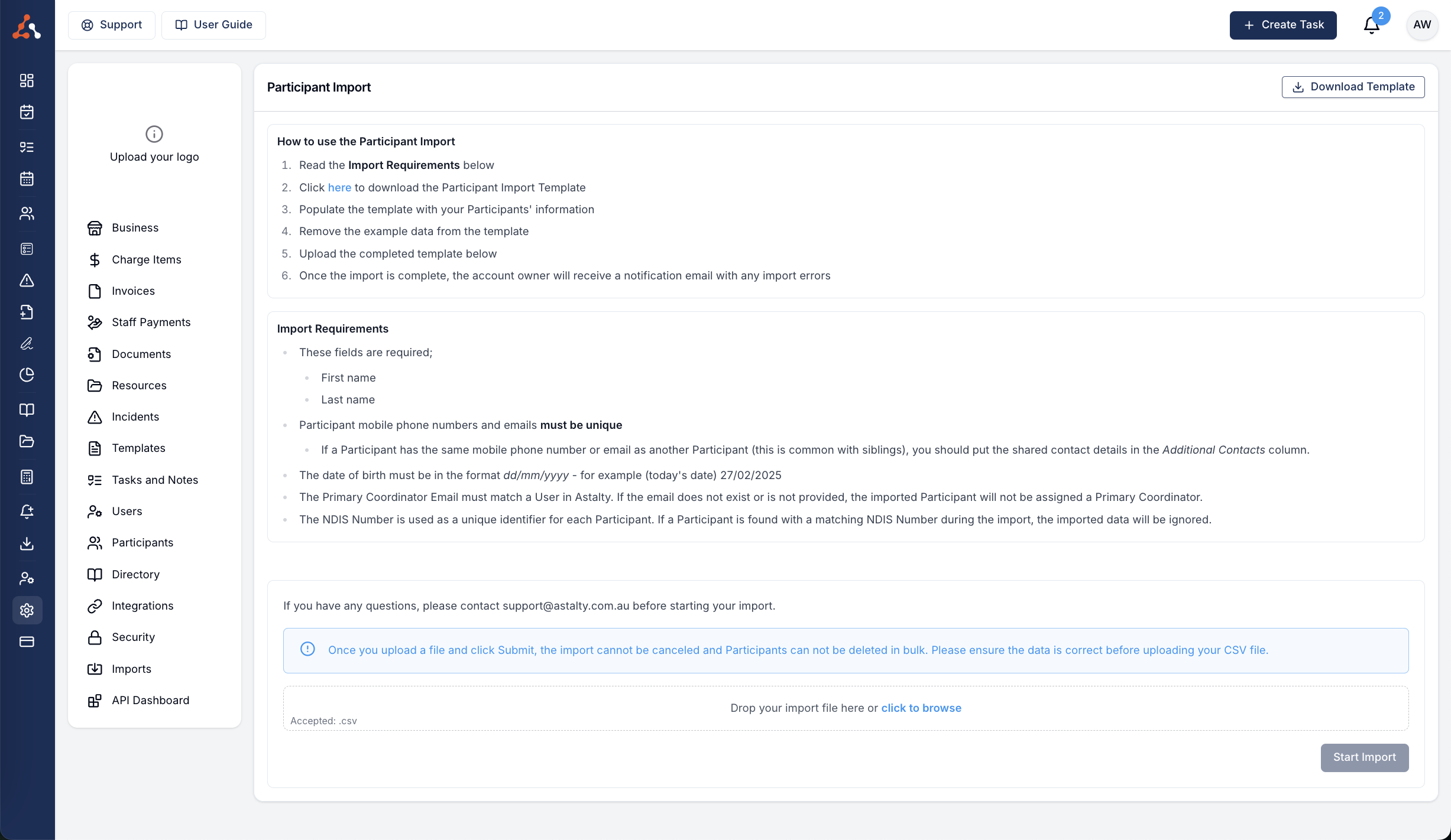 If you encounter any issues during the import process, please reach out to support at support@astalty.com.au for assistance.