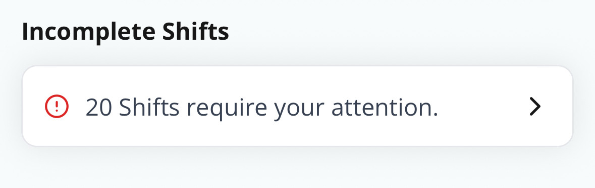 Once the action is completed, the shift will be removed from the Incomplete Shifts list.