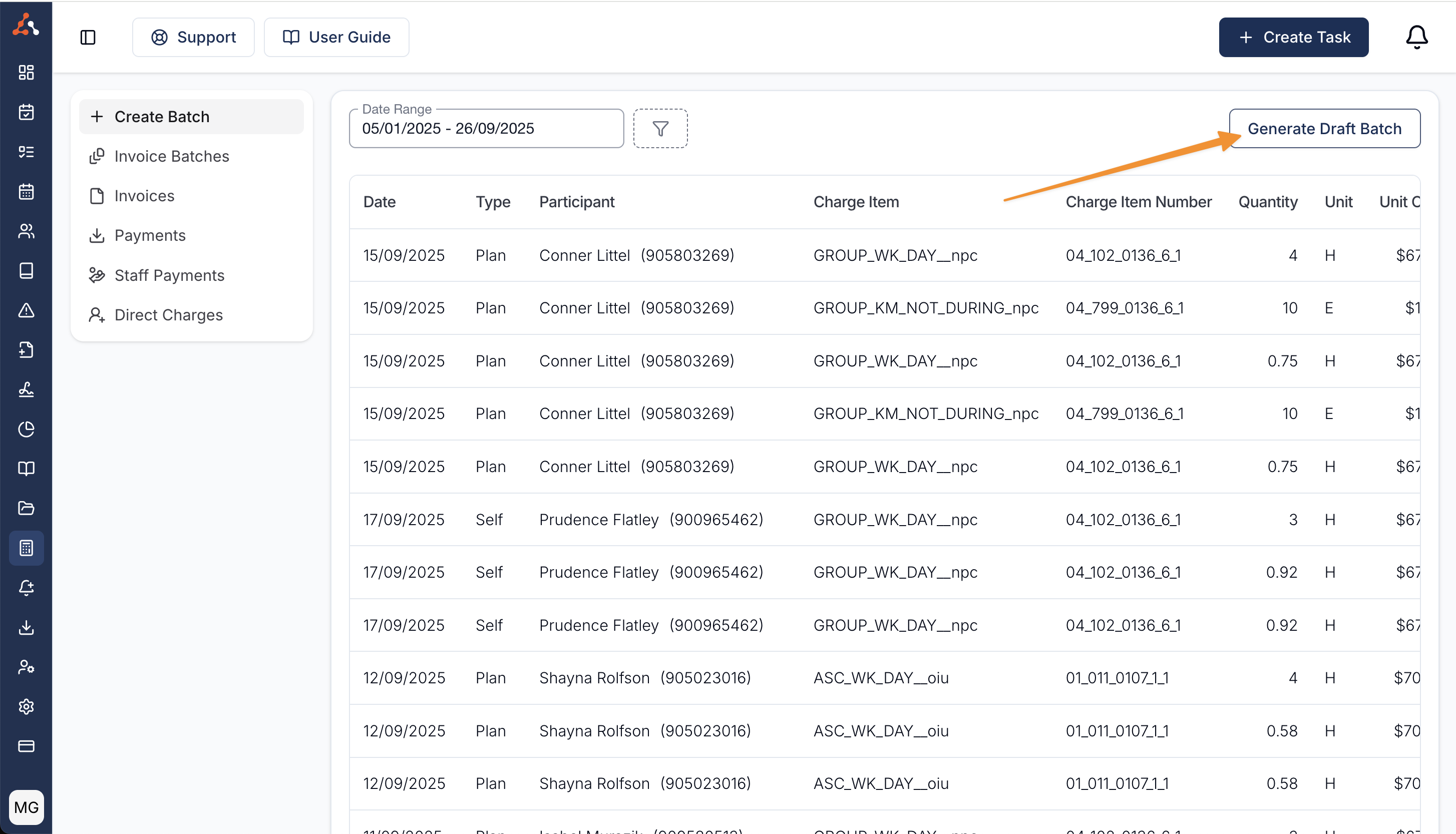 When you are ready and happy with the selected date range click on Generate Draft Batch.