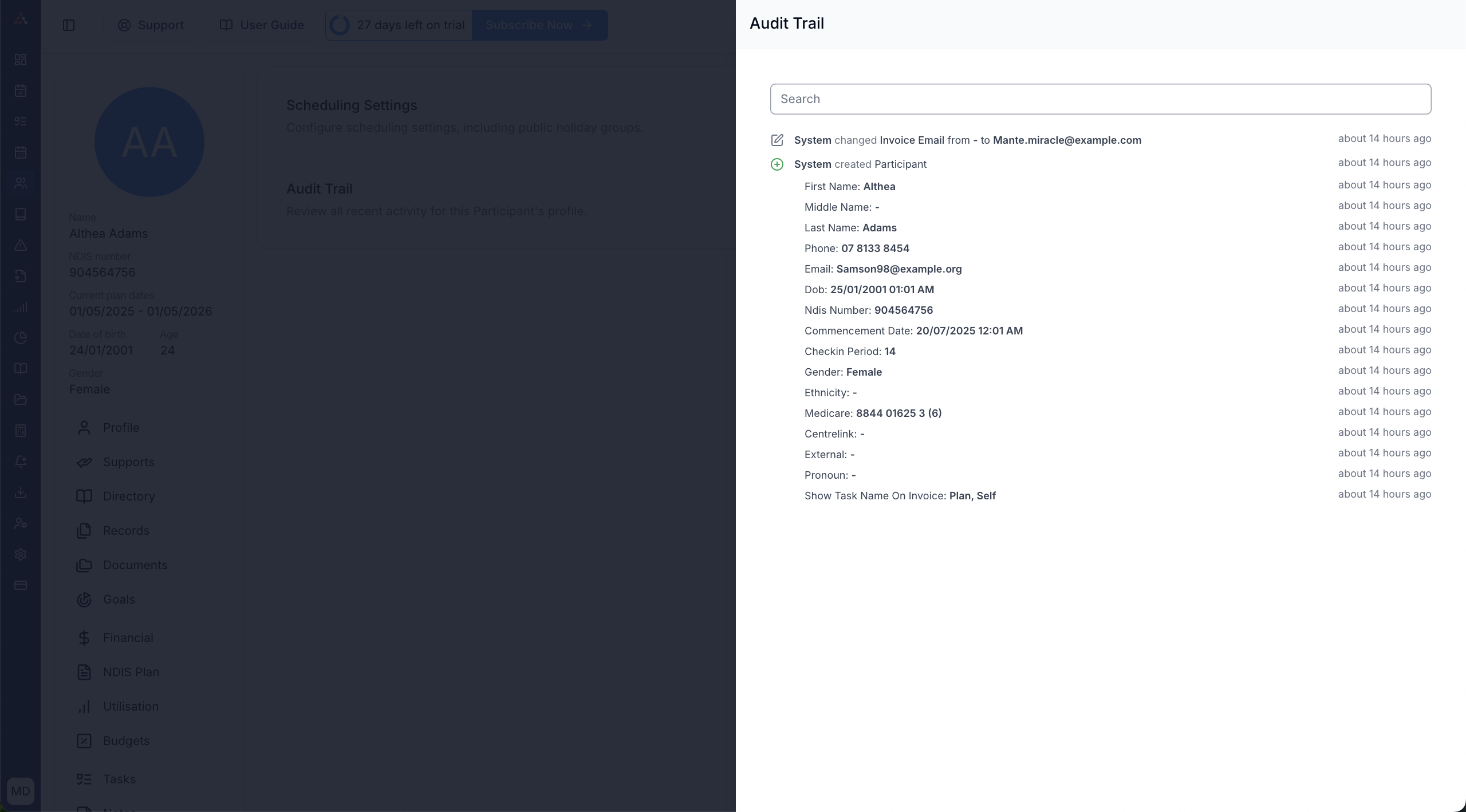 You can now view a participant audit trail for all updates to the participants profile via this menu!