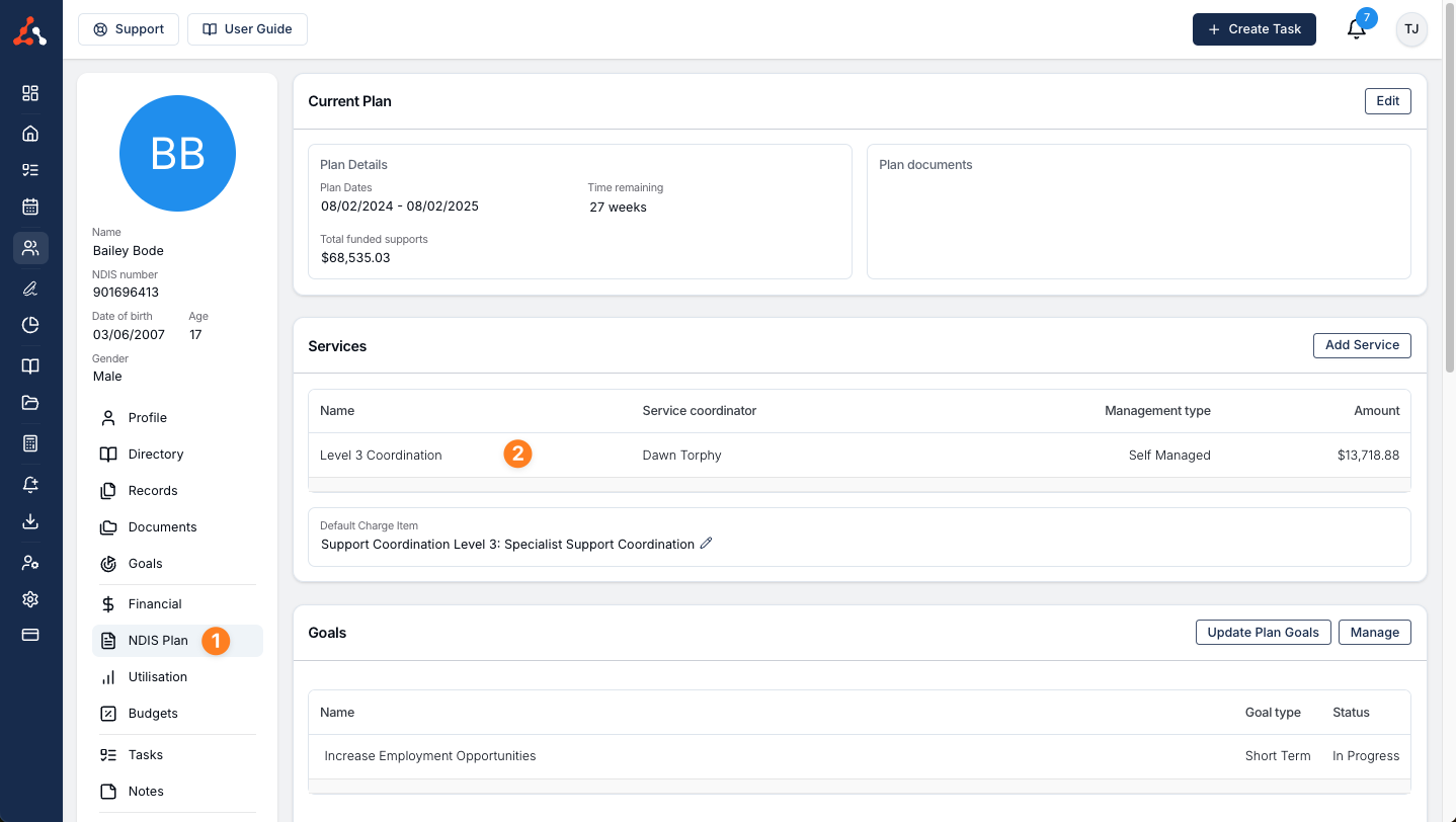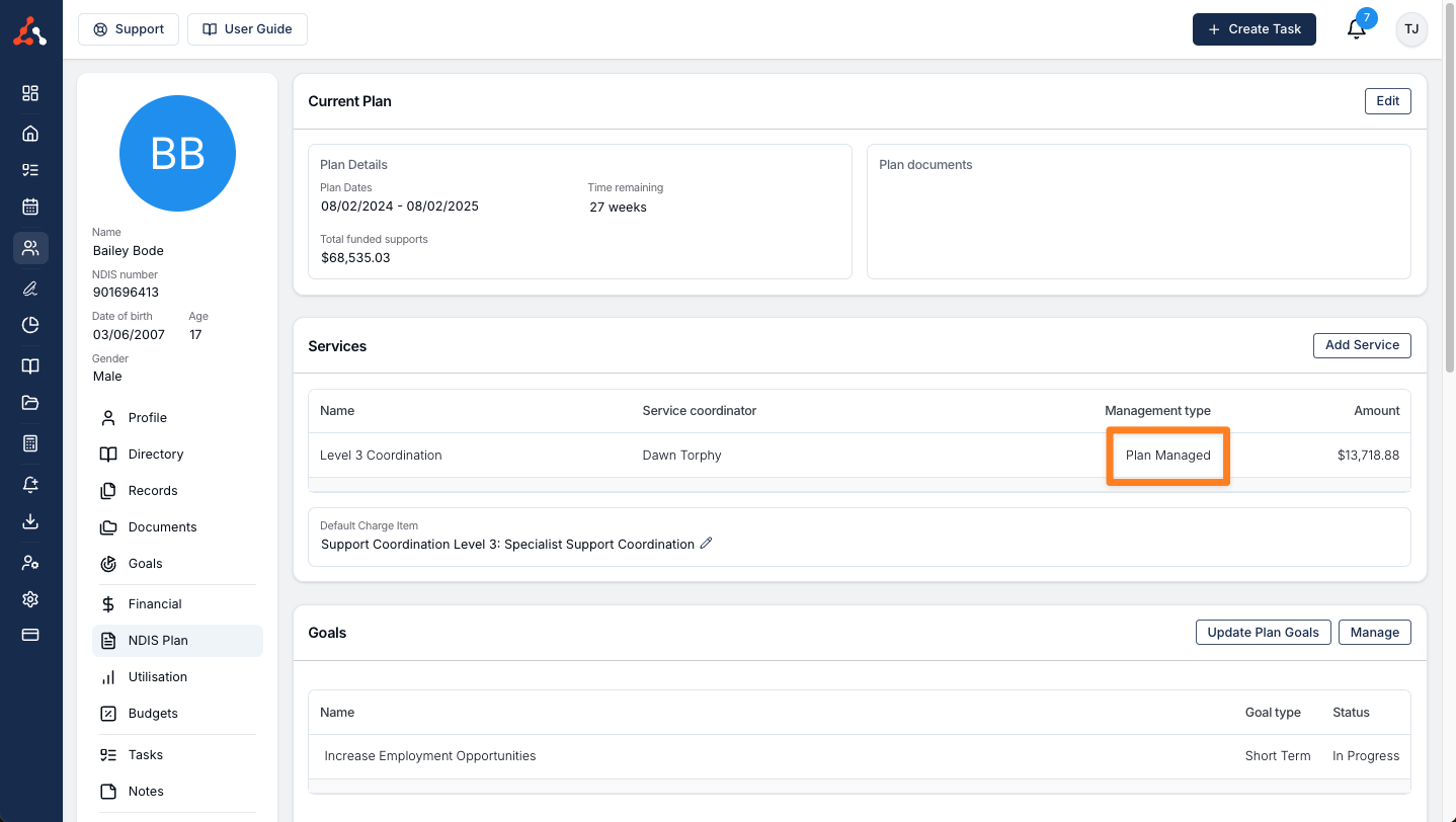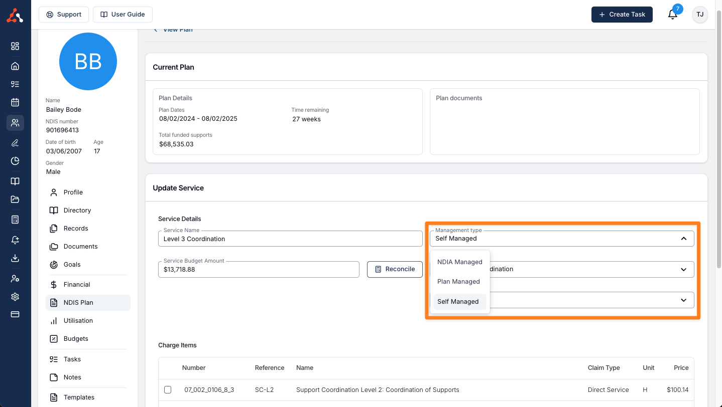 If you need to update the management type of a participant for any reason you can do that within their NDIS Plan Page. Once in the plan page select the service for the management type you would like to change.