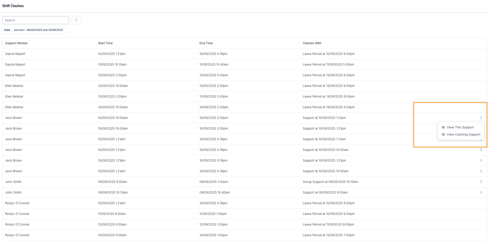 By reviewing clashes before they occur, you can adjust rosters to avoid gaps in service delivery.