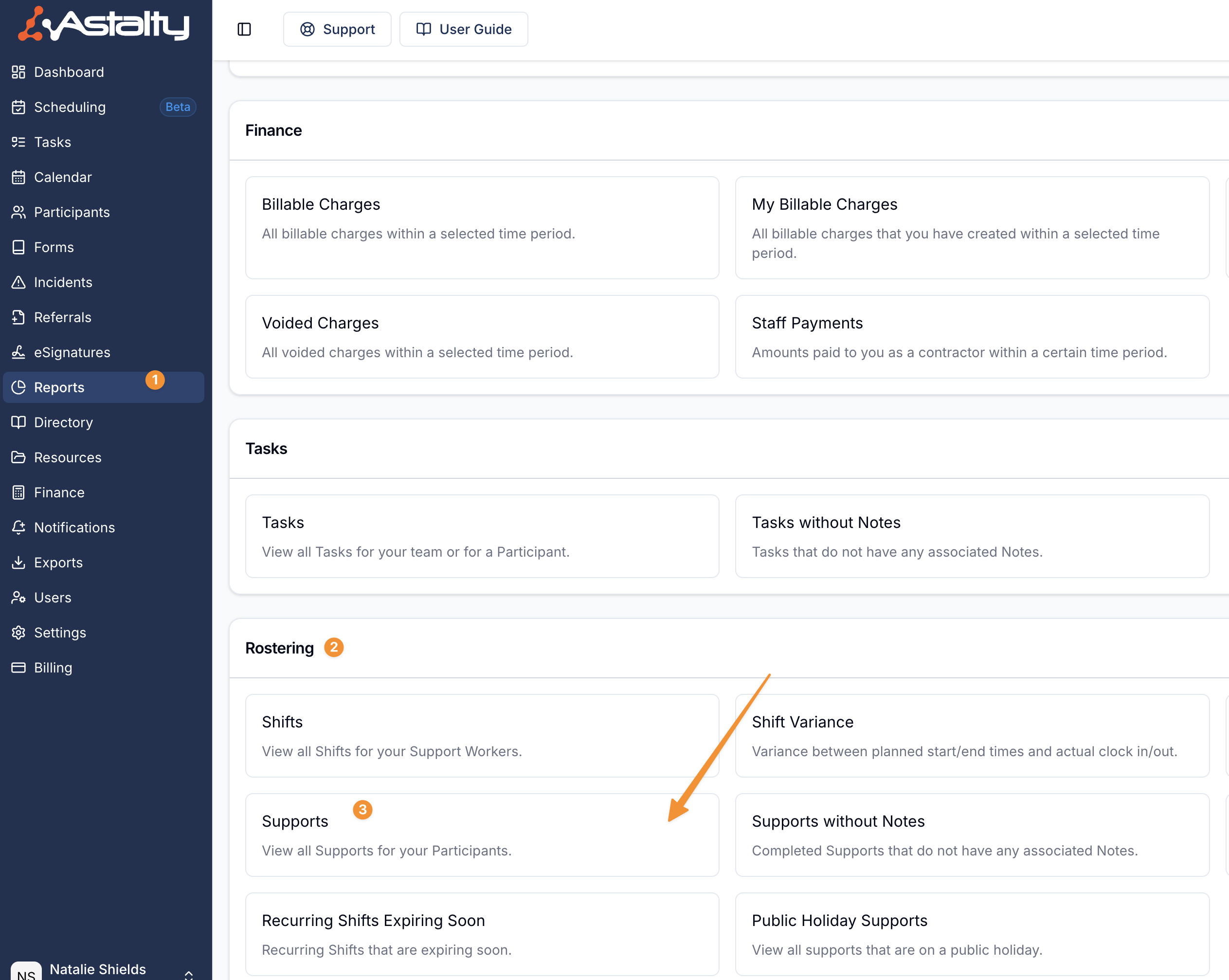 The Supports Report provides visibility over all supports and allows you to filter results to better understand cancellation patterns. This report can be filtered by date range, and includes more flexible options to help analyse cancellation behaviour.