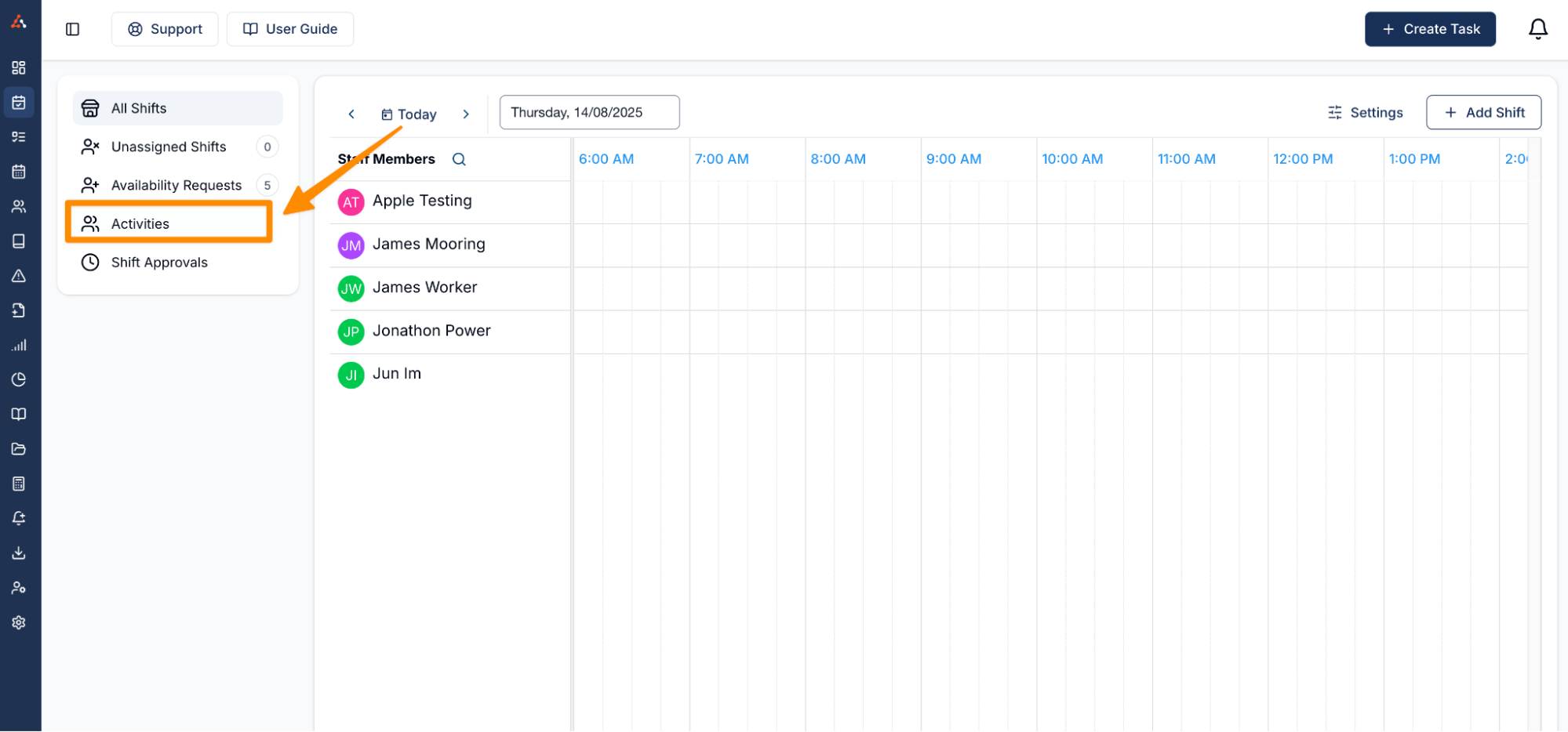 From the Scheduling page, select Activities from the left-hand menu and click Create Activity.