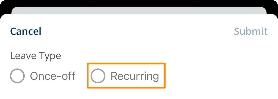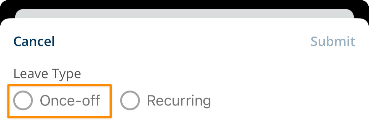A once-off leave request can be used when you are unavailable for a single day or for a set of consecutive days.