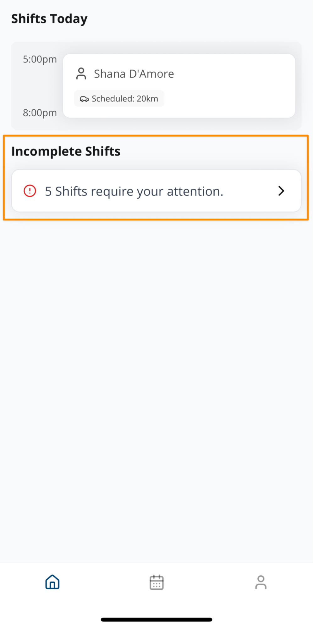 Once completed, the shift will disappear from the Incomplete Shifts list.