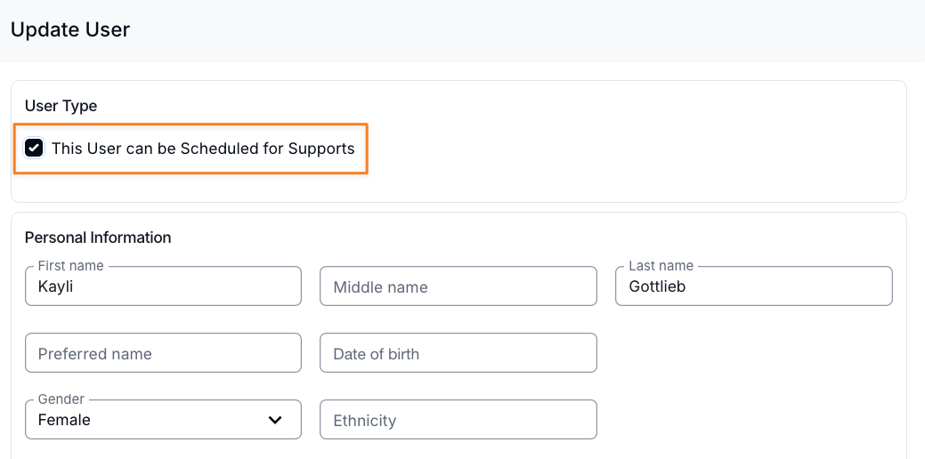 In some cases, you may wish to schedule a Team Member who is not created in Astalty as a Support Worker. To do this, you need to update their user profile so they can be scheduled for support.