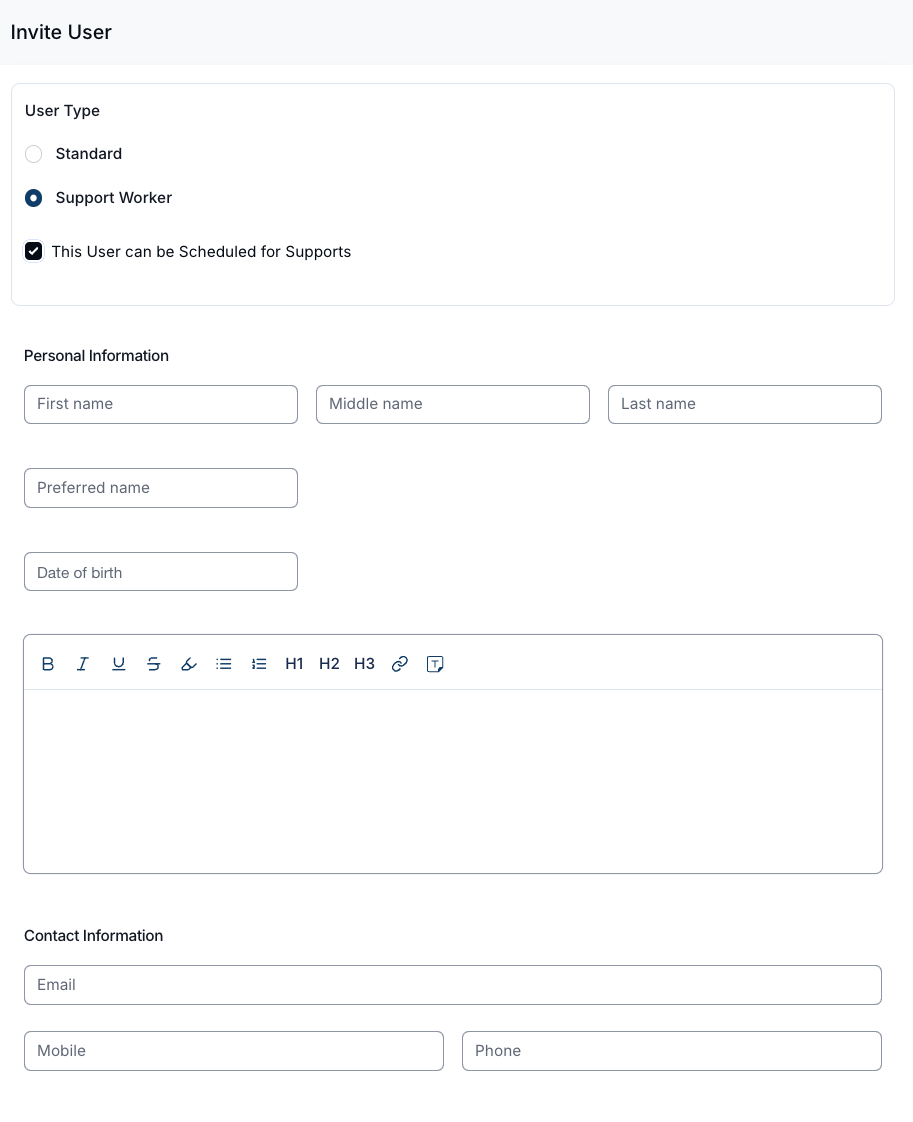 Method 1: Invite a New User as a Support Worker