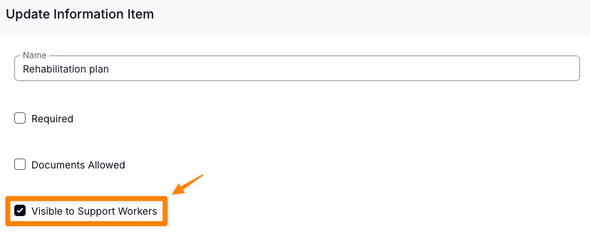 Information Items allow Astalty users to store important participant details under customisable headings. By enabling the Visible to Support Workers option, you can make specific Information Items available in the Astalty app for Support Workers to view on the participant’s profile. This feature is ideal for controlling which details are shared with Support Workers while keeping other information visible only to office staff.