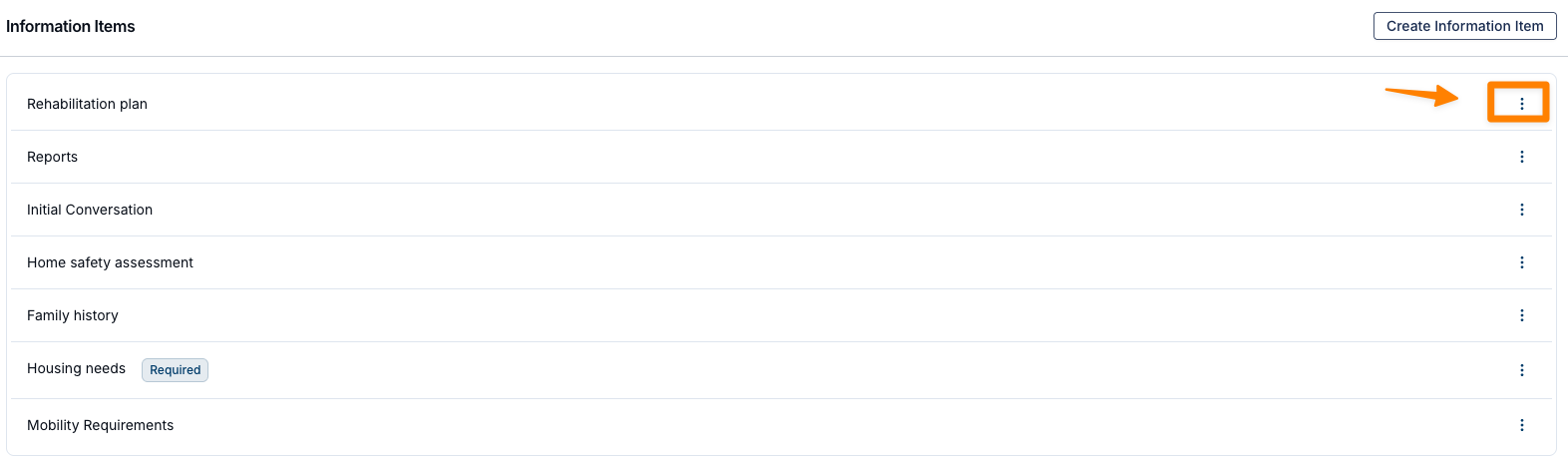Locate the Information Item you want to update, click the three dots, and select Edit.