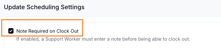 To enable this setting, tick the Note Required on Clock Out checkbox.