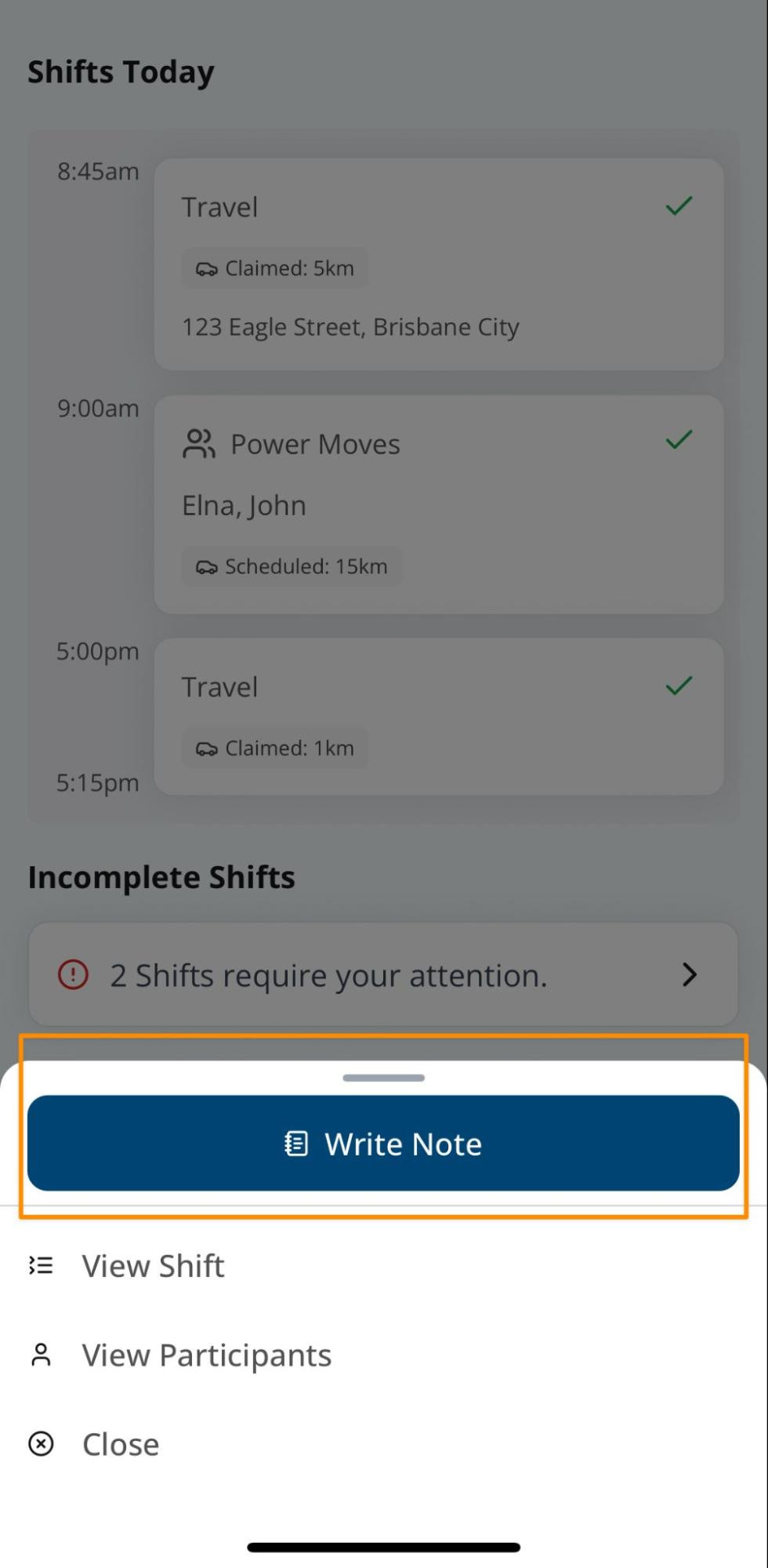 To use a template, open the support you’ve been scheduled for and tap Write Note.